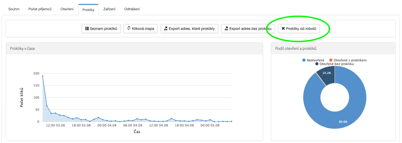 Pokud ve vaší kampani takové adresy objevíme, uvidíte ve statiskách tlačítko: